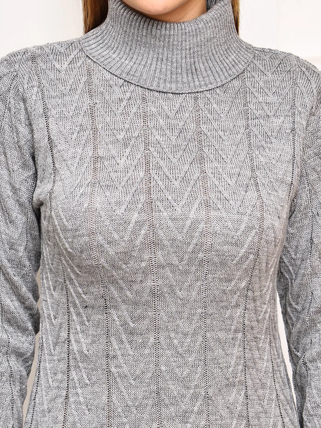 Elevate your winter wardrobe with this elegant Grey Cable-Knit Turtleneck Sweater Dress. Designed for both warmth and style, this dress features a beautifully textured cable-knit pattern that adds depth and sophistication. The snug turtleneck offers extra comfort on cooler days, while the long sleeves with ribbed cuffs keep you cozy yet polished.